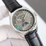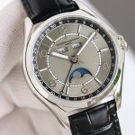 统一价: Vc江诗丹顿伍陆之型 Fiftysix全日历系列 腕表 型号 4000E 000A-B548 B439 B438 B065 表壳 尺寸40Mm真正同步原装。旋入式表冠和造型独特的盒式蓝宝石水晶镜面,提升耐磨耐用性的同时,保留了Fiftysix伍陆之型系列的复古韵味。 表盘 12点钟位置两个矩形视窗,分别可以显示星期和月份。日期显示位于表盘外缘,由带箭头的烤蓝指针指示。6点钟位置为月相显示,由蓝色的夜空和白金月亮组成。刻度圈配以白金材质的阿拉伯数字和棒状时标,与深邃的月相盘相映生辉。 机芯 不惜成