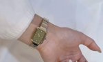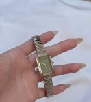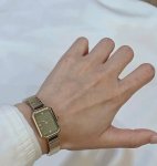 罗拉绿色系的总能吸引我的注意~ 实物看起来好清透 满满清冷感 而且上镶嵌的钻Bulingbuling闪闪的 表带是有金色点缀 戴上温柔又显白 秋冬搭配或者尊嘟吼