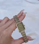 / 罗拉绿色系的总能吸引我的注意~ 实物看起来好清透 满满清冷感 而且上镶嵌的钻Bulingbuling闪闪的 表带是有金色点缀 戴上温柔又显白 秋冬搭配或者尊嘟吼