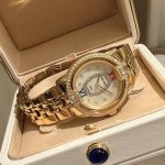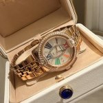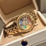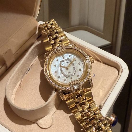 罗杰杜彼 升级版到货Velvett名伶系列 女士腕表 Velvet系列表盘线条鲜明有型,透过两个不同层次展现立体浮雕效果。数字和镶块位于表盘中心,表耳经悉心装饰,表売则介于圆形和酒桶型之间,带给视觉前所未见的独特美感。这款腕表以巧夺天工的技术和浪漫唯美的诗意重新诠释品牌的美学元素。表盘33Mm,篮宝镜面,经过圈口的二次改装,镶嵌顶级天然原产地晶莹剔透宝石,大闪亮,难度极高,目前同种材质最闪工艺。及精湛的宝石镶嵌工艺,杰出设计及珠宝完美融为一体!全新作品嵌入品牌独门所有的华丽美钻,具体升级细节如下: 表壳
