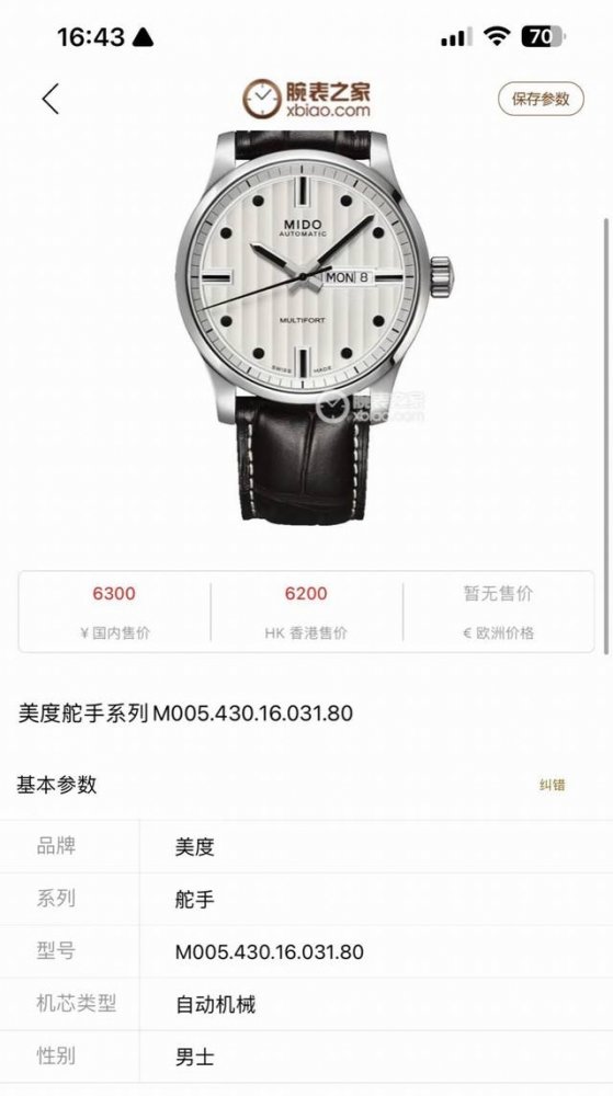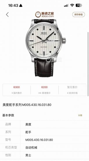 / 美度 舵手系列M005.430.16.031.80男士自动机械腕表,表径42毫米 国行 年全套 双日历显示 透底新款80动力机芯 蝴蝶表扣 公价8190 店内现
