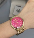 西太后火龙果色表尊嘟好好看 Ddd 火龙果色搭配金色表带 Ddd 表盘还镶嵌着不规则土星表盘啦 Ddd 秋天绝对是吸睛的配饰首选 DDD