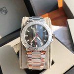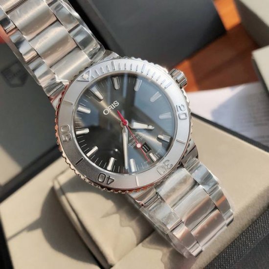腕表的灵感来自于水的颜色,灰色的表盘是波浪起伏的大海,银白色的时标像海中晶莹的水滴,红色的秒针十分抢眼,时标和指针都覆盖有Super-Luminovar夜光材料。方便在黑暗的环境下读取时间信息。除此之外,表盘6点钟位置设了日期显示窗口,再添一项实用功能,表带配有不锈钢表带和胶带出货,表盘直径43.5毫米,机芯采用原装瑞士Sw200机芯。表壳采用不锈钢材质打造而成,搭配单向旋转表圈。表壳经过抛光和拉丝打磨,呈现出金属特有的光泽。位于一侧的表冠上镌刻有品牌名称,四周采用防滑纹理打造