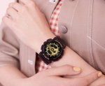 这款休闲手表来自为活力女性设计的Baby-G Ba-110系列,其设计灵感源自G-Shock热门型号Ga-110。其特点在于表盘和指针等各个部件复杂组合的设计,齿轮造型的部件、立体表盘和指针给人一种充满活力的印象。功能方面,不仅具备防震和防水性能,还配备了灯光和秒表等实用功能。这是一款在街头场景中非常抢眼的酷炫Baby-G手表。