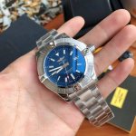 配全套包装 该款百年灵复仇者腕表配备刚劲有力的精钢表壳,表径尺寸43毫米,防水性能达200米 660英尺 ,搭载经瑞士官方天文台认证 Cosc 的自动上弦机芯,完美展现了挑战者系列年轻、动感、所向无敌的气势。缎纹磨砂表圈上四枚标识性表圈指示器,不仅确保最佳的操控性,还能有效保护双面防眩蓝宝石表镜。表盘有黑色、蓝色及银白色可选,均饰有大尺寸夜光指针和时标。