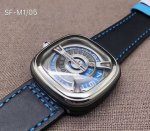 顶级品质,高性价比 品名:七个星期五 男士机械Sevenfriday 新颖设计,以圆盘代替时针,错落有致 型号:Sf-M1 05 蓝色可选Nfc 尺寸:47*1