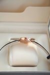 黑色表盘与经典别致的扇形图案相融合,展现现代女性多面的风采。Divas' Dream腕表从女性的优雅气质和永恒之城的迷人气息中汲取灵感,以独树一帜的罗马精神向最迷人的女性致敬。这款珠宝腕表极具女性气质、精美雅致,呈现卡拉卡拉大浴场大理石的色彩和扇形马赛克的迷人曲线,体现意大利美学的真正精髓。 石英机芯。30毫米18K玫瑰金表壳。18K玫瑰金表冠,镶嵌一颗蛋面形切割粉红碧玺。18K白金链节。黑色漆面表盘,配以钻石时标。黑色鳄鱼皮表带,搭配18K玫瑰金针扣。 DDD