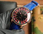 Casino Tourbillon是一款结合了陀飞轮和轮盘游戏功能的复杂机械腕表,不仅具有极高的工艺价值,还融合了娱乐元素,使其成为一款独特的时尚配饰。腕表配置推杆推动轮盘头,配有37个口袋,1个绿色,18个红色和18个黑色,以及一个白色陶瓷球。它的机械结构依靠的是品质极高滚珠轴承,轮盘头高速旋转,摩擦力极小。随机性达到了最佳状态,使Casino Tourbillon 再现拉斯维加斯美式轮盘桌面 极具创造性 成为真正的便携式游戏。Au