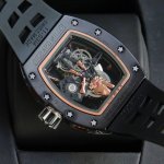 2630最新爆款 机械款金手指 Richard Mille 理查德米尔 Rm66 最新款的镂空的腕表表盘融入被称为“恶魔角〞的金属礼手势,象征着亲情与包容,同时又带有一丝叛逆,表圈和底盖由Carbont碳纤维材质加工而成,表壳侧面还装饰着玫瑰金巴黎钉纹,搭配黑色、白色、红色、橙色进口橡胶表带,以独树 帜的设计,在音乐中找寻共鸣。 DDD