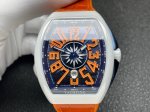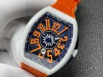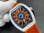 Abf新配色-Fm-V45系列 DDD Abf 最高品质 新款到货 Franck Muller 法兰克穆勒 Vanguard Yachting V45遊艇系列 44X54 Mm DDD 1.表壳100%进口 原版开模 特别是三明治结构表壳 中间内侧 蓝色的侧槽和把头位置凸出来的蓝色耳位 更是使表壳的制作过程更加困难 然后历时10个多月经过多次初版校对 终于研发制作成功 完全采用316精钢制作 而非市场低成本的塑胶模具 DDD 2.本版本V45游艇字面 真法郎字丁 都是采用原装1:1高度的数字凹边内法郎烤真