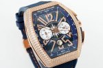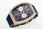 Abf 法穆兰 Fm V45 Cc Dt 蓝色遊艇计时机械 Ddd 1.表壳原版开模 三明治结构表壳 中间内侧 蓝色的侧槽和把头位置凸出来的蓝色耳位 更是使表壳的制作过程更加困难 然后历时10个多月经过多次初版校对 终于研发制作成功 完全采用316精钢制作 而非市场低成本的塑胶模具 Ddd 2.字面 每个字丁都是采用原装1:1高度的数字凹边内填油真丁 成本高 制作复杂 良品率低 字面下层有放大镜垫片层 日历窗也是采用蓝宝石放大镜 始终保持与原装可以通用的要求 精益求精 Ddd 3.原装采用Eta7753机