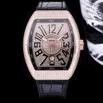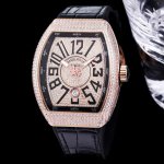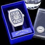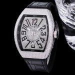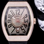 Abf V3版V45最高品质 Fran Muller 法兰克 44X54 Mm1.表壳100%原版开模 特别是三明治结构表壳 中间内侧 黑色的侧槽和把头位置凸出来的黑色色耳位 更是使表壳的制作过程更加困难 然后历时10个多月经过多次初版校对 终于研发制作成功 完全采用316精钢制作 而非市场低成本的塑胶模具 2.本版本V45字面 真法郎字丁 都是采用原装1:1高度的数字凹边内法郎烤真丁 成本高 制作复杂 良品率低 字面下层有放大镜垫片层 日历窗也是采用蓝宝石放大镜 始终保持与原装可以通用的要求 精益求精