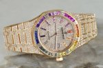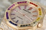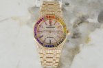 Amg解锁!彩虹圈爱彼皇家橡树系列“隐藏款” 15413Or每一枚都是Amg工坊耗时千小时的匠心之作 表圈镶嵌32颗渐变彩虹宝石 搭配密镶钻石表盘!整体奢华精致