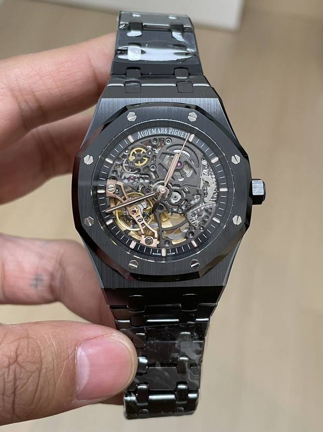 Ap皇家橡树15416Ce黑陶瓷 开模定制 原装数据黑陶瓷壳套 3132镂空一体机 真齿轮 真发条盒 拔针停秒等功能完美对版