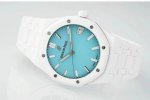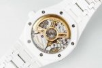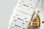Aps新品爱彼15500全陶瓷款式全新到货,凭借陶瓷材质与Cal.4302一体机复杂功能的结合,成为工艺与创新的典范,既延续了皇家橡树的经典美学,又突破传统材质限制,堪称现代高级制表的标杆之作 DDD 1. 陶瓷材质的优势 DDD 高硬度与抗刮耐磨:采用精密陶瓷 如氧化锆 制成,硬度远超不锈钢,日常佩戴不易产生划痕,保持长久光泽。 DDD 轻量化与佩戴舒适:相比金属材质更轻盈,减轻腕部负担,适合长时间佩戴。 DDD 抗过敏与耐腐蚀:陶瓷化学性质稳定,不易引起皮肤敏感,且抗汗水和腐蚀。 DDD 独特质感:表