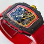 Av 定制的这只 Rm 67-02,厚度只有 7.8 Mm,重量仅 35 克,上手更像“第二层皮肤”。轻若无物,却藏着顶级机芯与复合材质。 DDD 表壳工艺:由数百层碳纤维与石英纤维交错叠加,每层仅 45 微米,在 120 °C、6 Bar 高温高压下固化成型。 DDD 视觉效果:无论是车手上赛道还是商业会场,这一块纹理都在低调炫技:‘我来自顶级工艺。” DDD 机芯:Av定制级Crma7 自动上链,裸机尺寸约 28.40×31.25 Mm,厚度机器件约 3.60 Mm。 DDD 这是“顶尖工程 + 竞技