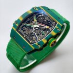 Av 定制的这只 Rm 67-02,厚度只有 7.8 Mm,重量仅 35 克,上手更像“第二层皮肤”。轻若无物,却藏着顶级机芯与复合材质。 表壳工艺:由数百层碳