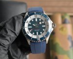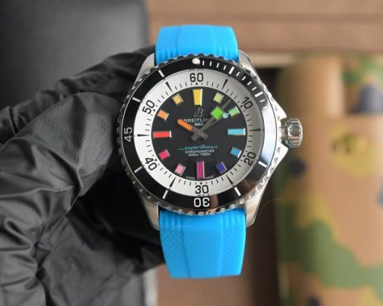 Bls百年灵超级海洋系列42Mm腕表。 1:潜水表既要满足清读时,更要操作便捷。此款时标和指针大限度的夜光涂层,保证在昏暗的深海能清晰读时,如在黑暗中的小灯泡一样;便捷则离不开带坑纹的陶瓷表圈、微拉扣的折叠表扣;配搭精准机械机芯与耐磨的双球形蓝宝石玻璃。 2 几何指针,清晰更有型。此款腕表的指针将几何魅力挥洒到极致,新奇而和谐的组合,不但读时清晰,更一见难忘。 3:听声辨表,操作便捷。喜欢机械腕表的人,也多为上链时、旋转表圈时的声音着迷。听着那分明的节奏,手下似乎更能清晰地感受到各个部件在流畅运转。单向旋
