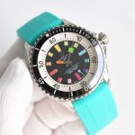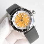 Bls 百年灵 超级海洋系列42Mm腕表。 DDD 1:潜水表既要满足清读时,更要操作便捷。此款时标和指针大限度的夜光涂层,保证在昏暗的深海能清晰读时,如在黑暗中的小灯泡一样;便捷则离不开带坑纹的陶瓷表圈、微拉扣的折叠表扣;配搭精准机械机芯与耐磨的双球形蓝宝石玻璃。 2 几何指针,清晰更有型。此款腕表的指针将几何魅力挥洒到极致,新奇而和谐的组合,不但读时清晰,更一见难忘。 3:听声辨表,操作便捷。喜欢机械腕表的人,也多为上链时、旋转表圈时的声音着迷。听着那分明的节奏,手下似乎更能清晰地感受到各个部件在流畅