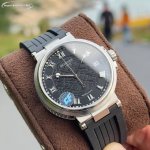 航海Marine航海系列5517款腕表,航海天文钟的起源作品,“时计本是兵家利器”说的就是这款腕表,钟表界的巨作。工厂p全面抄写原装数据,98%还原壳型字面,彰显原装优雅硬朗的气质,原装同款777A自动机械机芯,镌刻独立编号与宝玑先生签名。直径40毫米。正反均为蓝宝石防刮玻璃,旋入式防水表冠。实测防水深度100米。搭配饰有太阳放射纹表盘,配装进口天然橡胶表带,以零头的价格p给您带来原装超值体验。