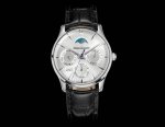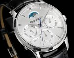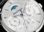 Gr厂新品经过3年研究积家大师全功能万年历机械机芯,复刻积家大师万年历自动机械腕表。在不计时间和成本的理念坚持下,实现了使用进口9015机芯还原一体机复杂功能868机芯所有功能与官方一致! Ddd 一:万年历功能,可触及8点位置隐形按键通过月份调节年历,万年历年份正常运行,这样便于年历的功能模块的运转,年份显示 一2029使更换万年历功能模块更简便。 Ddd 二:日历盘星期盘月份盘功能,1.日历盘3点位显示,可通过巴的拉出的第一个档位顺转向前日期调节,逆转向后日期调节,*不建议逆调因此功能会跳动月像盘。2