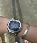 G-Shock Gmw-B5000D-1Er 大名鼎鼎的银方,估计算得上是这些年卡子在方块功能和配置推出的的一款革命性型号了,方块的功能也在蓝牙、电波,光能以及可以自选英、德、法、西、俄五种日期显示语言以及日月排列顺序的加持下被拉到了最满。不过因为材料的原因导致上手非常有分量,银色款也巨容易有划痕的那种,不过随着时间流逝也会越来越有感觉。