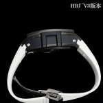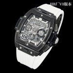 Hb厂 全新升级V3版本 一件快拆 细节颜色对版原装 市面顶级版本 新成员白色 齐色到货。 DDD 宇舶Hublot DDD 灵魂Big Bang系列.型号642.Nx.0170.Rx DDD 以赛车为灵感,推出全新Spirit Of Big Bang限量腕!腕表结合Spirit Of Big Bang系列的所有标志性元素,全新酒桶形表壳。表壳应用钛金属跟树脂材料,借助六枚H型螺丝构建“三明治”结构,传达“融合的技术”的理念,完美复刻独家定制Hub4700机芯,原装折叠表扣,订制氟橡胶表带,腕表配有“一键