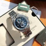 Maurice Lacroix艾美Aikon系列,独家新款三眼计时手表,白蓝黑表盘钢带瑞士男表,自1975年推出首款腕表以来,艾美表就一直是备受青睐的腕表品牌。艾美在2006年底跻身瑞士高级手表制造商之列。简约的表盘设计布局有致,抛弃一切影响清晰读时的繁复装饰。渠道正品货,支持任何验货 , 搭载瑞士Eta石英机芯,44Mm表径,10.8Mm厚度彰显其沉稳与大气, 蓝宝石水晶表镜,令表盘信息清晰易读。精钢精湛工艺,三眼6针表盘设计,折叠表扣,佩戴舒适,稳固。内打鱼鳞纹 高级腕表的细致 100%原单正品保障,