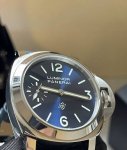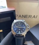Panerai沛纳海Luminor 庐米诺系列 手动机械机芯 小三针,夜光,小巧 男表 瑞表 44Mm 蓝色表盘 精钢表壳 小牛皮表带 Pam01085