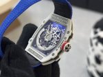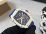 Richard Mille 理查米尔 Rm67-02 男士系列超薄一体机芯,原装数据 12点发条轮超大动能储存,六点位原装摆陀 自动上弦腕表,酒桶表壳以Richard Mille独有的Tpt碳纤维和Tpt全自动机械复合材料打造而成,在保持轻盈特性的同时,更具卓越的耐冲击性能,38X 48Mm表径,超薄厚度只有8.2Mm镂空表盘,蓝宝石镜面,背透。在2017年伦敦世界田径锦标赛开赛之时,Richard Mille为品牌友人 也是公认的跳高之王 Mutaz Essa Barshim量身打造了一枚Rm 67-0