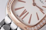 FFF Serpentiseduttori鎏金蛇影腕表 DDD 表壳 腕表尺寸33毫米、厚度6.85 DDD 1精钢表冠,饰以1颗凸形蛋面切割粉红碧玺 DDD 2银色蛋白石表盘、简洁大气 DDD 3圈口镶嵌38颗明亮式切割士奇水晶钻、光芒四射 DDD 4全新设计的六边形蛇鳞状精钢表链、柔韧灵活、整条表带由223个钢件拼组而成、每一件都独立打磨加工、工艺极其复杂,搭配折叠式表扣 DDD 5配备一致自制专用高精度石英机芯 DDD 6防水深度达到30米 DDD 出品、定位工艺、达到配件可互换的高标准、出入无压力
