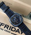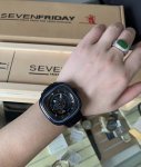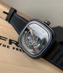 / Sevenfriday 七个星期五,型号C 03,多层面盘设计,四层组成,阳光放射纹枪金属色面盘,表壳做工精致,由不锈钢抛光,独特的动态环设计,圈口蓝色涂漆,日