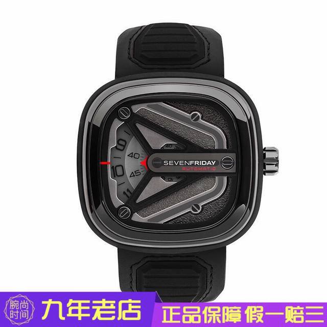Sevenfriday 七个星期五 太空飞船灵感牌自动机械表M301,拥有宇宙飞船的科技感,喷砂的黑色Y形船翼设计,形似起落架动态环,皮带具有三维效果的多级界面