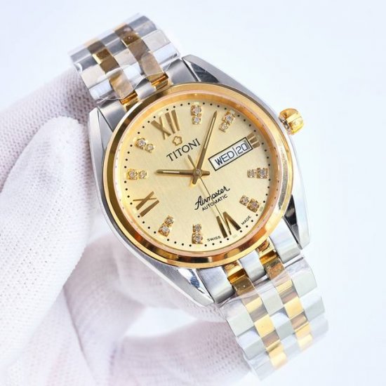 梅花 Titoni R1 瑞士机械手表男士腕表 空中霸王系列间金钢带 83909-Sy-063 礼物.[上市时间]2024新年礼物。 [品质]Aaa级! 表径40毫米!厚度11 Mm!不锈钢材质!防水结构!真金不退色。蓝宝石水晶表镜!配套原装进口日本8285 机芯!走时准确.经久耐用!温婉优雅!精品推荐!送礼佳品!S1精致推荐男士机械腕表