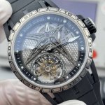 FFF Sj出品 DDD 新厂-New Factory』罗杰杜彼 王者竞速倍耐力单行陀飞轮#全镂空背透高级感型号分别:Rddbex0815、Rddbex0817腕表,这款腕表极具罗杰杜彼品牌代表性的设计,星型的框架设计,凯尔特十字架形陀飞轮,配有秒盘和小秒针,更显机械感,几乎一眼就可识别。表壳直径45Mm,厚度13.5毫米,搭载海鸥定制Rd505Sq手动上链机芯,机芯上夹板与鱼鳞纹打磨在内的各种超卓精修。 DDD 非市面其他小厂可比 DDD 注:特点 DDD 1.表壳:钛合金表壳与原装同步。 DDD 2.