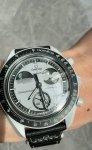 Swatch斯沃琪 X Biocerc Moonswatch 系列 石英机芯 30米防水 男表 瑞表 42Mm 黑色表盘 植物陶瓷表壳 尼龙表带