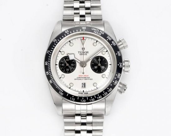 T Factory 帝舵 Tudor Kv3 碧湾计时型 Black Bay Chrono系列是一款融合潜水表传统与赛车计时功能的混合型腕表,以其复古美学与现代技术著称。以下是该系列的主要特点及型号简介: DDD 设计灵感与风格 Ddd **复古元素**:表盘设计灵感源自 年代帝舵潜水表和标志性“雪花”指针镜面使用蓝宝石锅盖玻璃更显突出,同时向 年首款计时码表Oysterdate致敬。 Ddd 测速外圈:配备哑光黑色阳极氧化铝测速计字圈,适合赛车计时功能。 Ddd 表盘选择:提供“熊猫盘” 黑盘银计时盘
