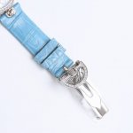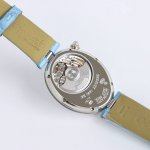 鹅卵形表壳高雅大气,表壳外缘饰有钱币纹。表圈和表壳周围镶嵌共117颗水晶 约0.99克拉 。