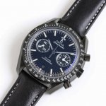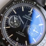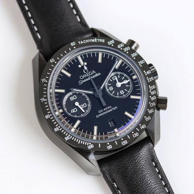 Tvs先锋之作, 超霸系列月之暗面腕表311.92.44.51.01 5 Ddd 44.25毫米同轴计时表,自主研发自制9300机芯3点盘为 12小时 和 30分钟 累积计时盘,所有功能及外观均按照原版 1-1 打造。 Ddd 机芯:9300双T黑摆轮,自动上链 同轴至臻天文台计时机芯,机芯镀铑表面饰有特别的阿拉伯风格日内瓦波纹 Ddd 圈口:磨砂陶瓷口 Ddd 表盘:哑光深灰陶瓷表盘 Ddd 表壳:磨砂黑色 Ddd 表带:尼龙黑布带 Ddd 镜面:双锅盖玻璃镜面 耐磨损 Ddd 功能:日期显示 计时 精