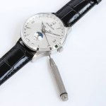 Tw Factory Jaeger-Lecoultre 积家 推出 Master Calendar日历大师1558420系列腕表Bj1 大师系列 Factory 聘请制表师傅通过两年无数次测试,Jl 期间损坏机芯上百个,从星期,月相,到日历,月份,一一还原正品制表特质,以稍作不同的方式展现其隽永魅力! 推出新品 积家日历大师1558420系列,腕表十二点位置两个窗口分别显示星期和月份,腕表在6点钟位置的副表盘可读取月相显示,边缘位置则显示时钟!腕表前后均采用蓝宝石水晶玻璃,皮带采用进口意大利牛皮,表扣则与