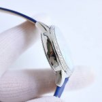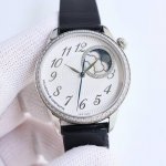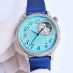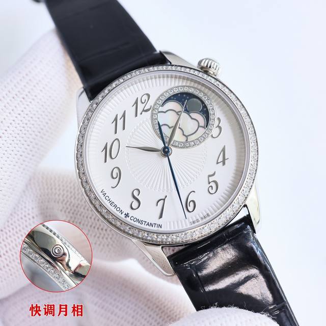 V2升级版 Vc 江诗丹顿 EgéRie 伊灵女神系列 再添新作!沉淀时光雅韵,流转日夜芳华。超薄机械女式腕表延续系列风格!全新乳光表盘以璀璨美钻相饰,褶皱纹饰历经数月调试,运用传统的“织锦 Tapestry ”工艺制作而成, DDD 表冠上饰有象征沉稳与静谧的弧形切割月光石,闪耀钻石的偏心式圆形表盘以梦幻般的方式展示时间,精美的珍珠贝母被雕琢成朵朵白云。直径37毫米,搭配进口9015改1088L自动上链机芯,完美呈现月相功能,典雅奢华专为女性鉴赏家倾心打造。精致推荐女士机械腕表 DDD