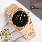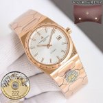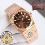 Vc+工厂p 江诗丹顿 历史名作 系列标志性豪华运动型腕表以纪念品牌成立222周年。 Ddd 表壳:尺寸37Mm X8Mm酒桶形采用三部分结构让整体并不显小,凹槽大齿轮表圈搭配5点钟位置的马耳他十字标志尽显其尊贵气息 Ddd 表盘:金色.玫瑰金.拉丝银及拉丝灰搭配金属拉丝附有夜光涂层的条形时标及棒状指针,保留最经典的二针 Ddd 机芯:9015改江诗丹顿自产2455 2机芯。从夹板到钢轮等部件均精工装饰,自动摆坨更是镀有22K黄金并篆刻222字体 Ddd 表带:采用一体式六边型中央链节让整表更显棱角分明,