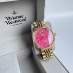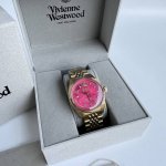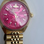 FFF Vivienne Westwood 西太后红龙果色玫红表盘 精钢表带粉色表盘 女士腕表 轻奢雕花红盘女表 DDD 众多好莱坞明星出席Vivienne Westwood时尚盛宴,威斯特伍德是朋克之母,欧洲朋克运动的显赫人物。她的设计之路从1971年开始,超前的理念和骨子里反叛精神推动了朋克风潮。 DDD 醒目的玫红色表盘,镶嵌不规则土星,复古女王范十足。12点位薇薇安土星标志,配以小土星秒针,印记品牌时尚格调。金色的精钢表带,凝铸时间驻足细赏 细腻典雅氛围。底盖镶刻Vivienne Westwood