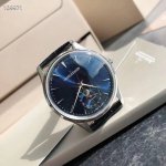 Zf 积家 Jl 月相大师系列 Rm6 表壳直径39Mmx9.9Mm与原装同步。六点钟的子盘拥有阳历阴历 月相 双期显示,月相一月转一圈,功能和正品一致。 技术突破 采用9015改积家自产Cal.9251机芯,功能百分百同步原装自产机芯。走时稳定,素质坚挺。 细节突破 从侧面观察腕表盘面发现有微微的弧度,Zf为了达到这一效果,耗时费力多次调整模具,确保神韵和感觉能与原装相媲美。积家月相大师,满足您对月相的一切美好情怀。