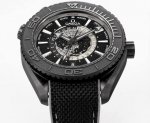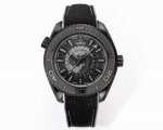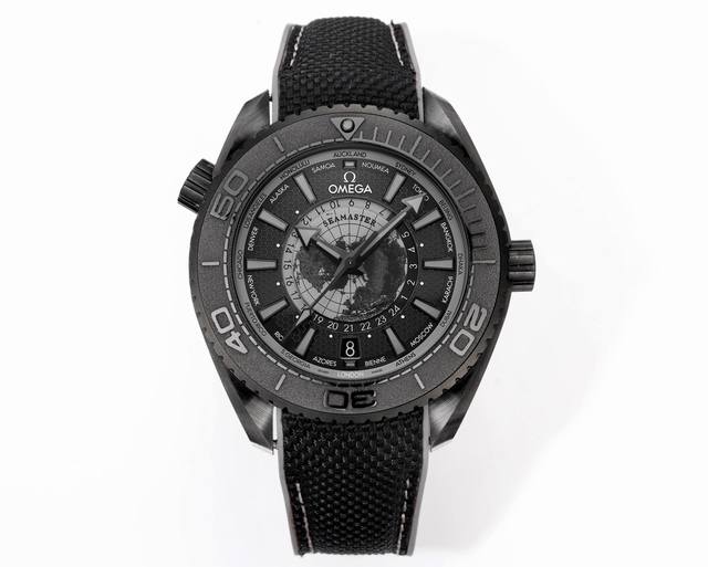 欧米茄呈献全新海马系列海洋宇宙世界时腕表。自环球旅行中汲取灵感,全新腕表沿袭了著名的 深海之黑 腕表的经典设计风格,黑色二氧化陶瓷打造的45.5毫米表壳,防水深度高达600米。