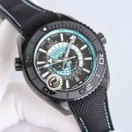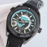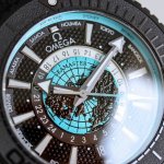 欧米茄,全新“全陶瓷”600米世界时!海马系列海洋宇宙世界时腕表! DDD 欧米茄呈献全新海马系列海洋宇宙世界时腕表。自环球旅行中汲取灵感,全新腕表沿袭了著名的 深海之黑 腕表的经典设计风格,黑色二氧化陶瓷打造的45.5毫米表壳,防水深度高达600米。 DDD 表盘中央设有鸟瞰地球表盘,以5级钛金属打造,激光烧蚀技术雕刻出陆地轮廓,并经过漆面处理。内表盘外侧设有24小时刻度环,并区分指示夜晚和白天。 DDD Naiad Lock 表背之下,至臻天文台认证的8938机芯清晰可见 DDD