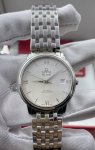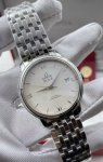 欧米茄四代碟飞系列机械全自动精钢男表 36.8毫米超大号表盘 白色同心圆盘面 经典古罗马刻度 剑型指针 带日历显示 蓝宝石镜面 搭载欧米茄机械全自动Cal.25