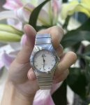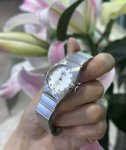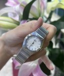 / 欧米茄星座系列 28毫米精钢女表 欧米茄星座系列曼哈顿,28Mm小表径的精致感太戳我了!全钢材质搭配白色贝母盘,阳光下折射的光泽美到窒息钻刻时标自带高级感,石英