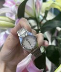 欧米茄星座系列 28毫米精钢女表 DDD 欧米茄星座系列曼哈顿,28Mm小表径的精致感太戳我了!全钢材质搭配白色贝母盘,阳光下折射的光泽美到窒息钻刻时标自带高级感,石英机芯走时精准又省心。 年全新保卡,通勤约会都能戴的百搭款,姐妹们这款真的闭眼入! DDD