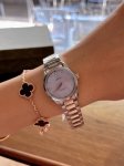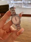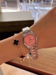 这款精钢腕表采用对称设计28Mm表径,大小适中,非常秀气、精美绝伦!多巴胺彩盘 8枚圆点镀铑小时刻度和4枚钻石小时刻度贴镶于镀铑托槽之上。指针亦经过镀铑处理,表背于波纹背景之上浮雕欧米茄海马徽章图案。